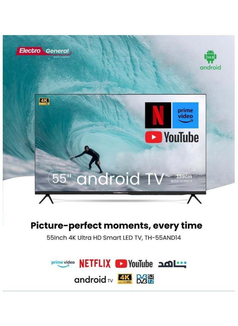 تم تصميم تلفاز TH-55AND14 LED الذكي لتطوير تجربة الترفيه لديك مع حجمه الرائع البالغ 55 بوصة ودقة UHD 4K. استمتع بدقة مذهلة وألوان نابضة بالحياة تجعل أفلامك، وعروضك، وألعابك تنبض بالحياة. مدعومًا بنظام التشغيل أندرويد 14، يقدم هذا التلفاز الذكي وصولاً سلسًا إلى مجموعة واسعة من التطبيقات وخدمات البث، مما يتيح لك الاستمتاع بالمحتوى المفضل لديك في الوقت الذي يناسبك. مع المكونات المضمنة مثل حامل الطاولة، وحامل الحائط، ودليل المستخدم، وبطاقة الضمان، وجهاز التحكم عن بُعد، فإن إعداد مركز الترفيه الجديد لديك يصبح سهلاً للغاية. قم بالتوصيل بسهولة بأجهزتك باستخدام منافذ متعددة، بما في ذلك USB، ومخرج صوتي، وHDMI. استمتع بمزيج مثالي من التكنولوجيا والترفيه مع TH-55AND14.