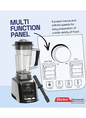 يقدم لك شاشة عرض للوقت والسرعة لتحكم دقيق، بالإضافة إلى تحكم متغير بالسرعة مع 4 برامج ذكية مخصصة لسحق الثلج، تحضير السموثي، الآيس كريم، والعصائر.