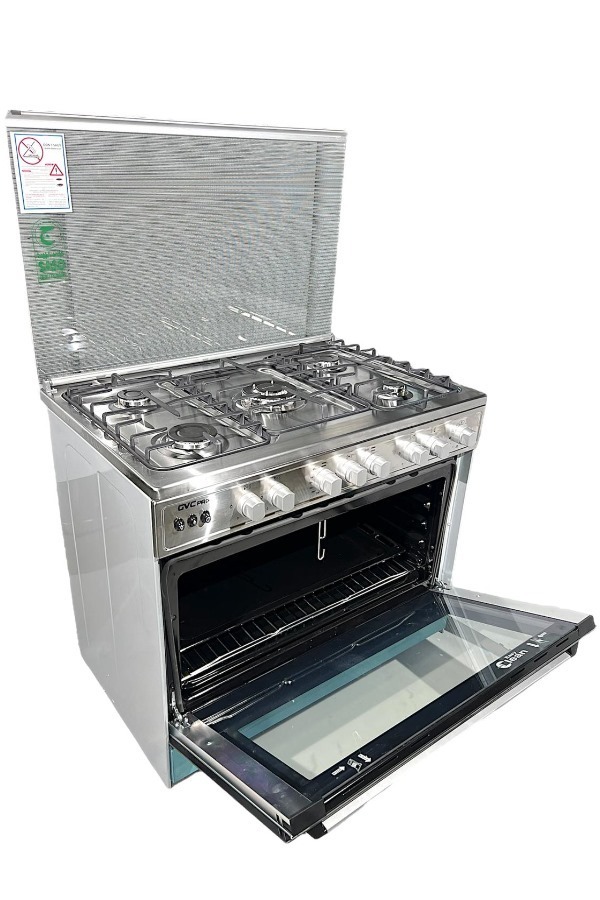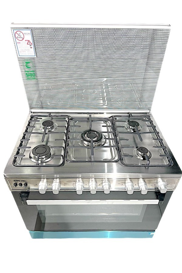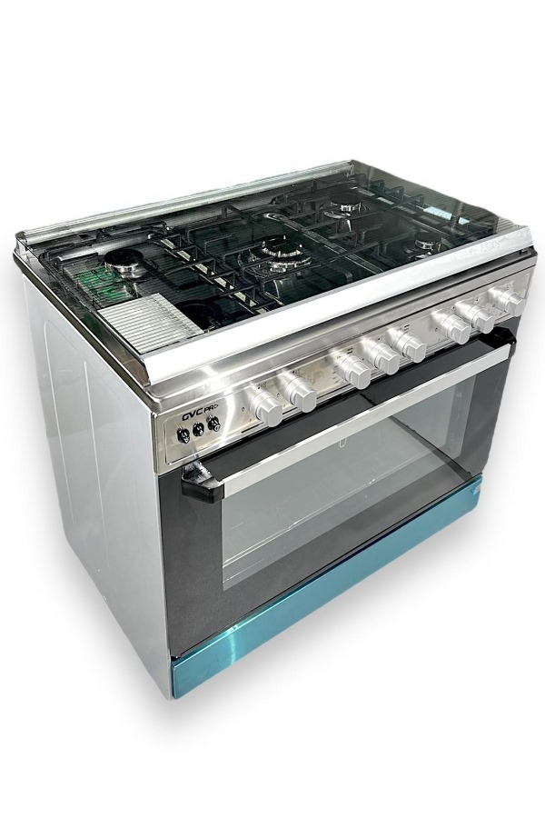 جي في سي برو فرن غاز 5 عين، 90*60 سم، إشعال ذاتي، امان كامل، استيل – صناعه مصري