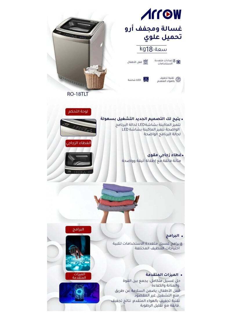 أطلق العنان لقوة الابتكار مع غسالة التحميل العلوي Arrow 18KG مع المضخة قل وداعا لاحمال الكبيره